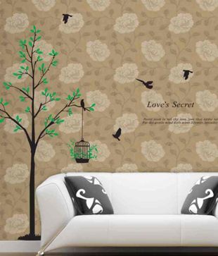Zagsa Green Garden Birds Cage Wall Sticker