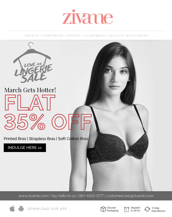With our sale getting hotter by the minute, you need to pick your favourites fast. Zivame, Your Lingerie Expert. Use debit/credit cards, gain biggest savings.