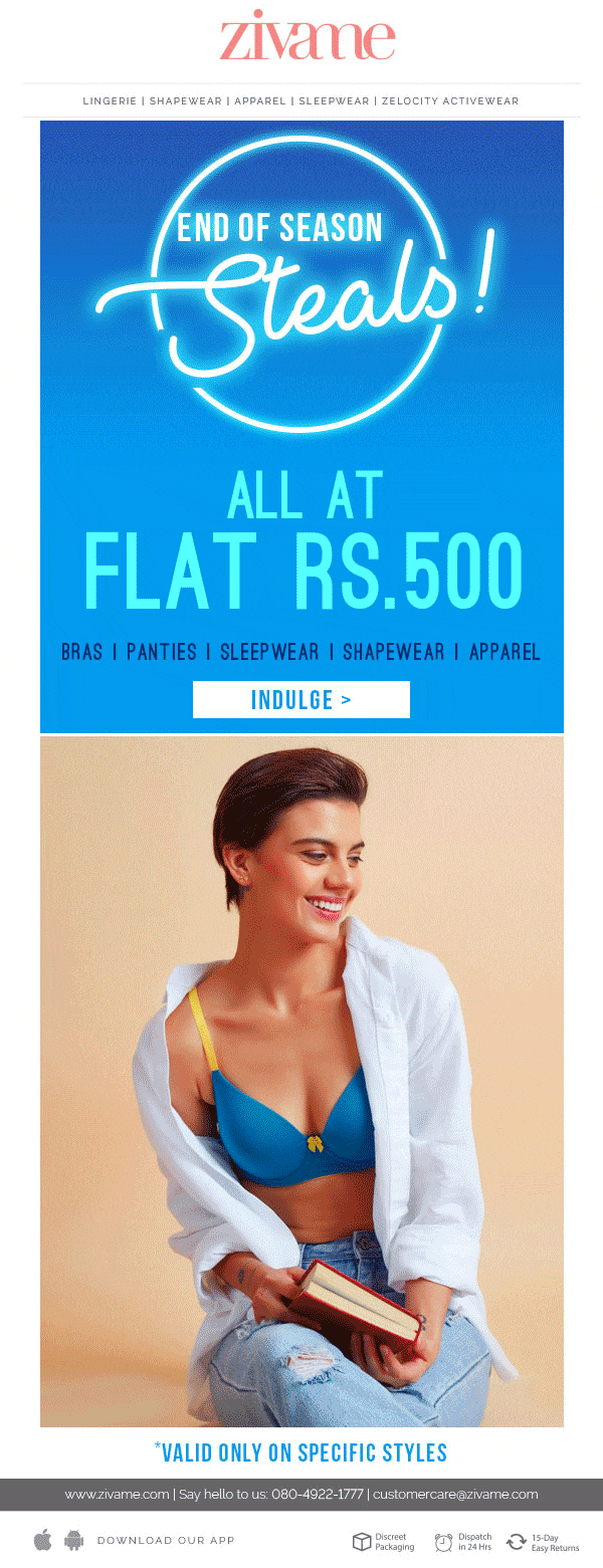 End of Season Steals - Bras, Panties, Nightwear, Shapewear & Apparel. Zivame, Your Lingerie Expert. Use debit/credit cards, gain biggest savings.